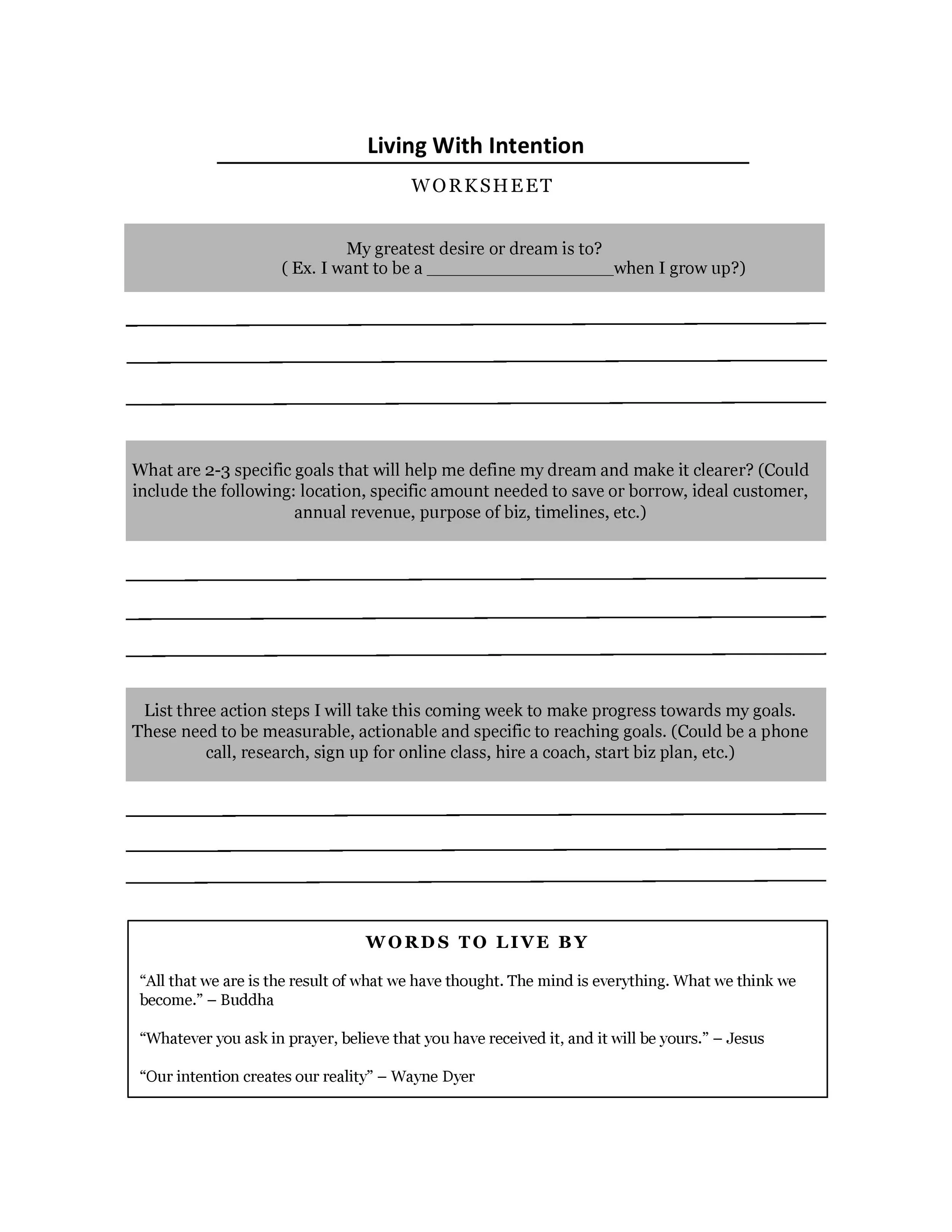 Living with Intention Worksheet